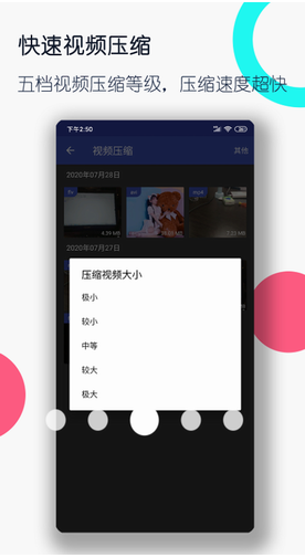 3、视频压缩:可以压缩各种模式,一键超快压缩,轻松就能完成压缩任务,超级简单又快。