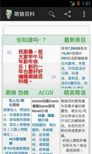 1.尽管软件名包含“萌娘”二字,实际上不是只与“萌娘”有关,还包含某些二次元,三次元流行用语的出处及解释,甚至于与二次元并无太大联系的手机游戏。