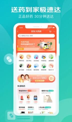 5、健康商城:覆盖非处方药、医疗器械、保健品、滋补品、计生用品等商品,京东物流配送,快速送货到家