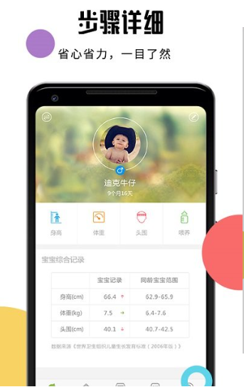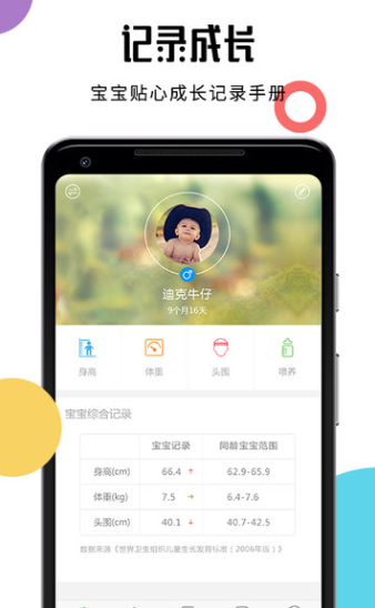 3、宝宝记录工具:在线记录宝宝的身高、体重以及喂养时间等等,时刻关注宝宝的状态发展。