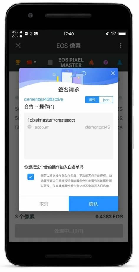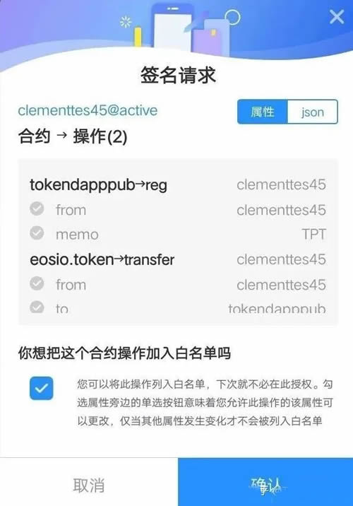 2. 点击购买后,即会收到白名单的签名请求,打勾确认后即可完成对白名单功能的签名请求。
