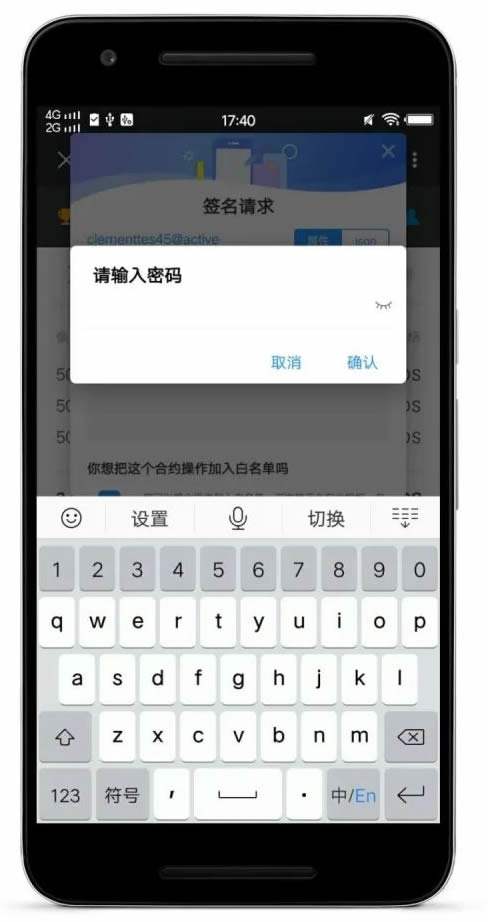 3. 最后,输入密码便可完成对白名单功能的的授权,再次进行相同合约操作时将可以免密操作。
