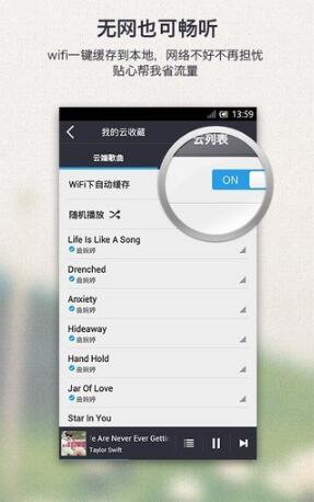 3、轻松拖拽歌词,歌词同步,让您边听边唱,流量限额提醒,贴心关怀您的话费。