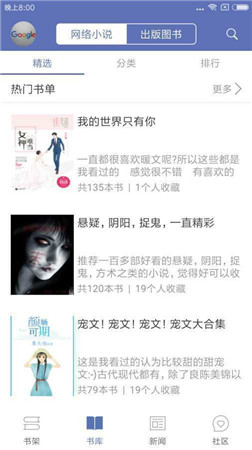 3、提供个性化的书籍推荐,帮助用户发现符合自己兴趣的新作品。