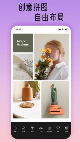 2.你可以在这里轻松合并更多你喜欢的照片,还可以提供各种文字和贴纸。