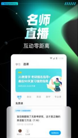 考研帮是最新在线学习教育软件,该软件是主要为每年备战考研的学生们服务。里面聚集了历年考试的真题集,还有很多模拟测试试卷,完全可以自由进行练习,以增加备考经验。这里包含了考试的所有科目,名师专栏会进行专业指导,让学生们在人生的冲刺路上能更上一层楼。