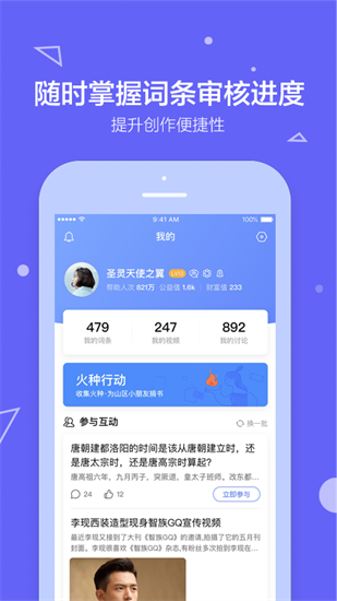 3、可在此管理个人信息,查看词条、讨论审核状态,并参与社区互动。