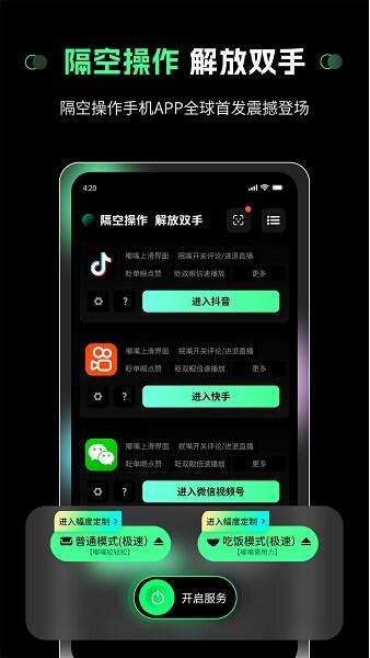 隔空操作app是专为智能操控手机打造的软件,使用其能够快捷进行手机的控制,便捷操作。可以自定义个人表情进行手机的智控,非常简单有意思,让你操作手机更加方便。