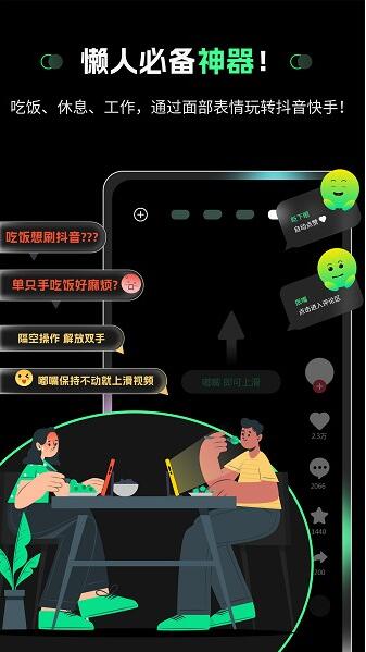 革命性的智能神器,完全颠覆了传统的操作方式。与其他手机应用不同,它让您无需双手接触手机屏幕,只需通过面部表情的变化来进行隔空滑动和点击屏幕。