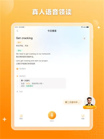 3、独有的跟读模式,可随时随地跟着母语人士模仿发音。