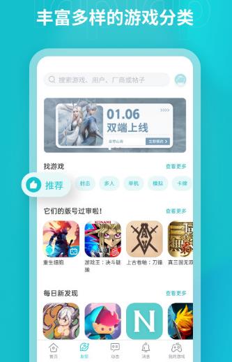 2、全新首页设计与游戏评价的推荐方式,不错过任何好游戏