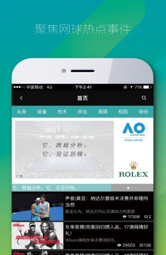 2、兼顾网球新鲜资讯的深度、广度与趣味性,满足不同球迷需求。