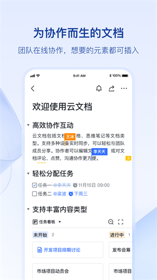 1、云文档:实时协同编辑,高效内容创作与互动;