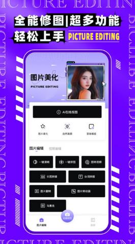1、图片编辑P图制作免费版app,一键智能美颜P图美图神器。