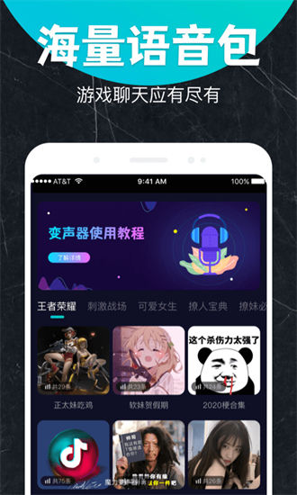 魔力变声器是一款很好玩的超级变声软件,为用户提供了流行的网络游戏语音包和各种网红语录。它有着各种有趣的音效,点击就能变声,很适合用在聊天、唱歌等场景,选择自己感兴趣的声音,轻松就能实现变声。让语音聊天更加舒适、轻松,也可以录制自己的声音,进行变声,制作专属的语音包。