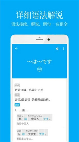1. 语法每天更新,语法解说、接续、意思、例句、分词标注、词典联动,初学者也能看得懂。
