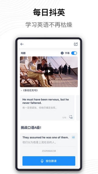 2、可语音、拍照查词:可语音输入查词内容;点击拍照按钮可快速实现拍照取词、实景翻译,将AR科技融入英语学习。