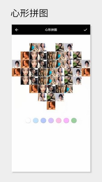 7、智能拼图,不论你选择多少张图片,它都能智能为你拼凑,效果也相当完美!你可以设置比例、圆角、边线、镜像、倒置、旋转 等操作。长按可拖动替换图片位置,双指滑动可调整图片大小,非常好用;