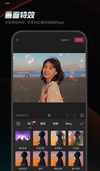 2、高保真的自然美颜效果,多种实时动态滤镜功能,提升视频画质、色彩韵味,彷彿漫步胶片复兴年代。