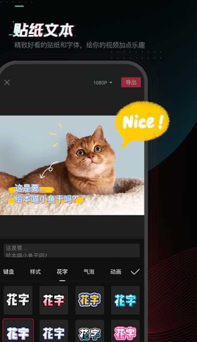 【贴纸文本】独家设计手绘贴纸,多种风格字体随心选,给你的视频加点乐趣。