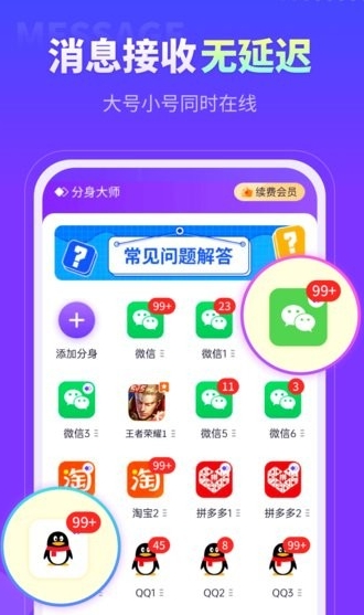 1.接收消息及时,所有分身单独运行,消息第一时间显示;