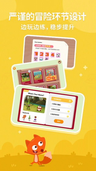 1、严谨的冒险环节设计,边玩边练,稳步提升;