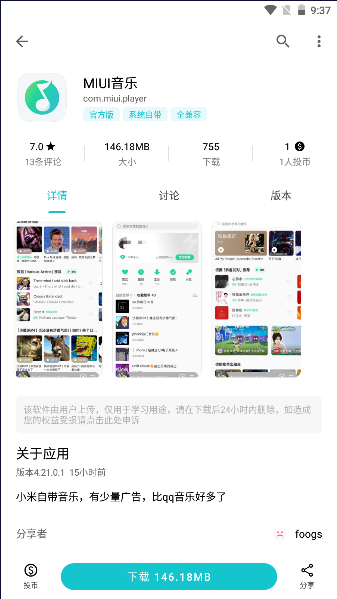 1、海量正版音乐资源:MIUI音乐拥有数千万首正版歌曲,涵盖流行、古典、摇滚、民谣、电子等各种曲风,并与QQ音乐合作,用户可以使用同一个账号畅享海量音乐。