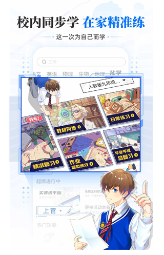 1、课程同步:小、初、高的课程都是同步的,如果你已经上了高中,但是对初中课程的知识概念很模糊,随时可以复习。