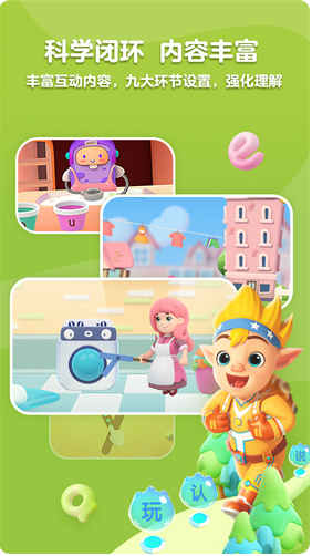 3、互动拼读:互动学习,拓展课程,日常生活、科技探险等等都可以与拼音融合在一起,让孩子保持学习的热情。