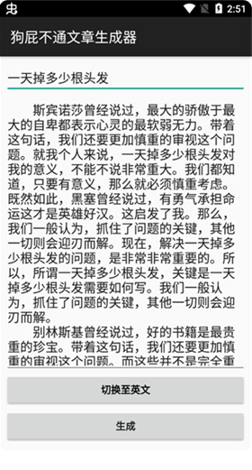 这款软件非常有意思,操作也很简单,其实你只要在题目的位置输入一个标题或者一个提问,然后点击生成就会有一大段话出来。