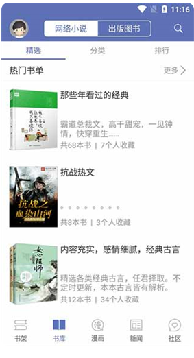1、小说的种类丰富,很多高质量的图书在这里都可以看,还有图文并茂形式的。