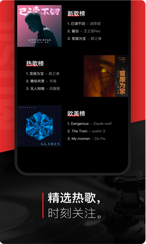 2、定期更新热门新歌,不知道听什么歌曲也可以看看歌曲排行榜,选评都是真实有效的。