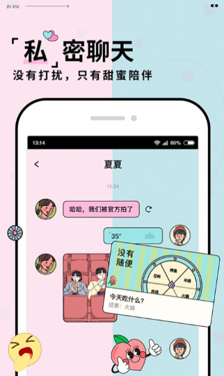 1、只有情侣才可以使用的软件,你们之间的对话只有彼此才能看见,保密工作做的比较好,注重隐私。