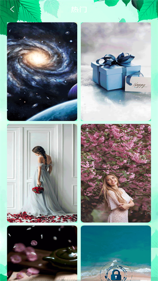 3,实时推新,把当下最流行最经典的壁纸照片收集起来,变成用户自己的图库,图库里的任意照片都能设置为壁纸,引领流行。