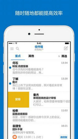 1、需点击几下,即可在电子邮件和日历之间切换,方便您安排下一次会议或分享您的空闲时间。