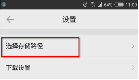 4、在这个界面上可以看到迅雷下载的文件是存放在内置存储卡还是外置存储卡下,点击被下载存放的存储卡。