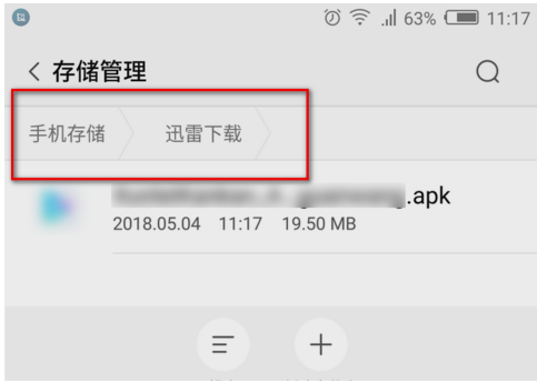 例如图示中位于内置存储卡根目录下的“迅雷下载”文件夹修改下载路径。