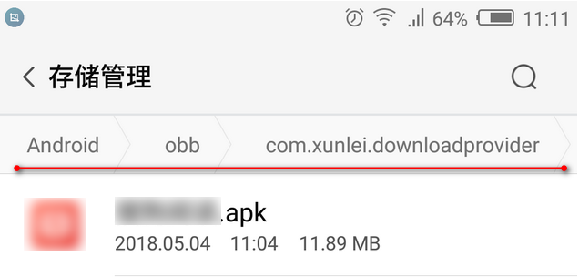 然后依次在你的存储卡下“Android/obb/com.xunlei.downloadprovider”路径下找到。