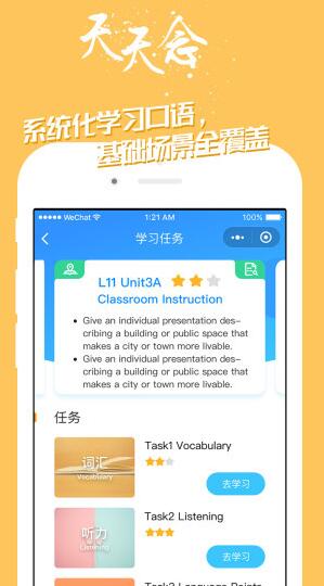 2、为用户提供了多种趣味口语场景,让口语运用到日常生活中,快速掌握流利的发音。