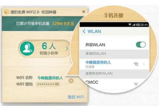 1、猎豹wifi被称为移动的路由器,可以通过软件让其他移动设备免费上网。