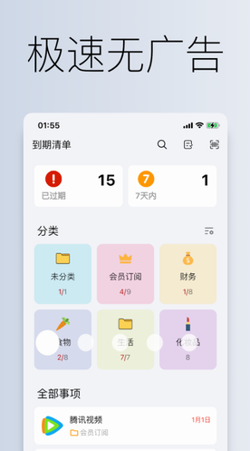 现在人工作忙的时候总是会忘记很多事情,一些重要的、琐碎的事情无暇顾及,可是这些会给我们生活带来不便,今天小编给大家介绍的是到期清单APP,其实这是一款生活助手软件,在里面我们可以记录各种数据,比如一些纪念日啊、生活之类的待办事项啊,一些银行卡账需要还之类的,让我们不会错过重要事件。