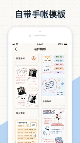 - 自带手帐模板:如果不会做手账也不要紧,这里有很多模板可以选择,各种风格的都有。