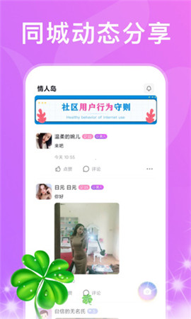 平台动态社区,每天上万用户分享自己的生活,让你发现同城小姐姐,也能让你们用不一样的方式,陪在ta身边。