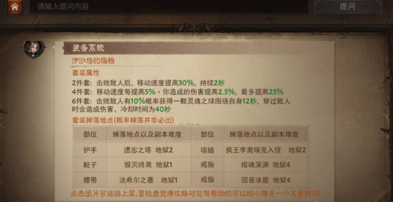 2、伊沙塔的悔悟:击败敌人有10%概率获得一颗灵魂之球围绕自身12秒,穿过敌人时会造成伤害。(6件套)