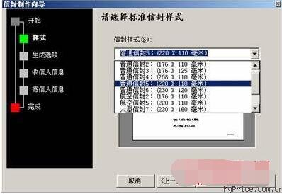 然后会出现信封尺寸的选择,如图2所示。在这里,您可以根据您的信封尺寸来选择相应的信封样式。这时如果您不知道手中信封的确切尺寸,可以使用带有刻度的直尺即可测出!