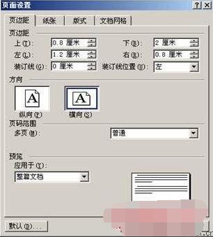 点击“文件”,选择“页面设置”,然后将“方向”选项调整为“横向”,如图7所示: