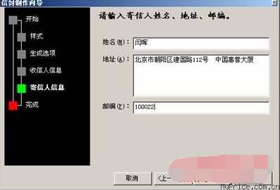 最后输入寄信人的姓名,地址和邮编,如图5所示: