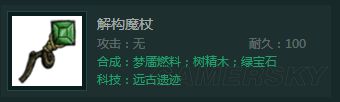建造护符,建造的物品减少一般的材料;解构权杖,把你建造出来的东西分解为建造之前的材料。