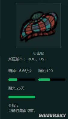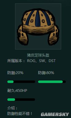 理由:自己玩的时候不玩女武神这个头盔是帽子的第一选择,而且猪皮在后期你只要合理使用猪皮是不会缺材料的,不错的防水和防御都是好选择。