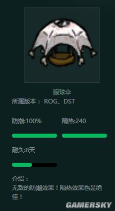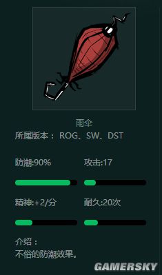 理由:这个是饥荒神器,应该没人反对吧,百分百的防雷和防水,夏季降温,可以带满春夏的东西,而且和雨伞一样可以修复,反复使用。